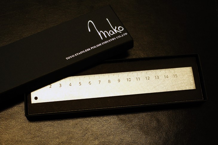 目盛りは全て研磨で彫り込んでおり、決して消えることのないモノサシです。
